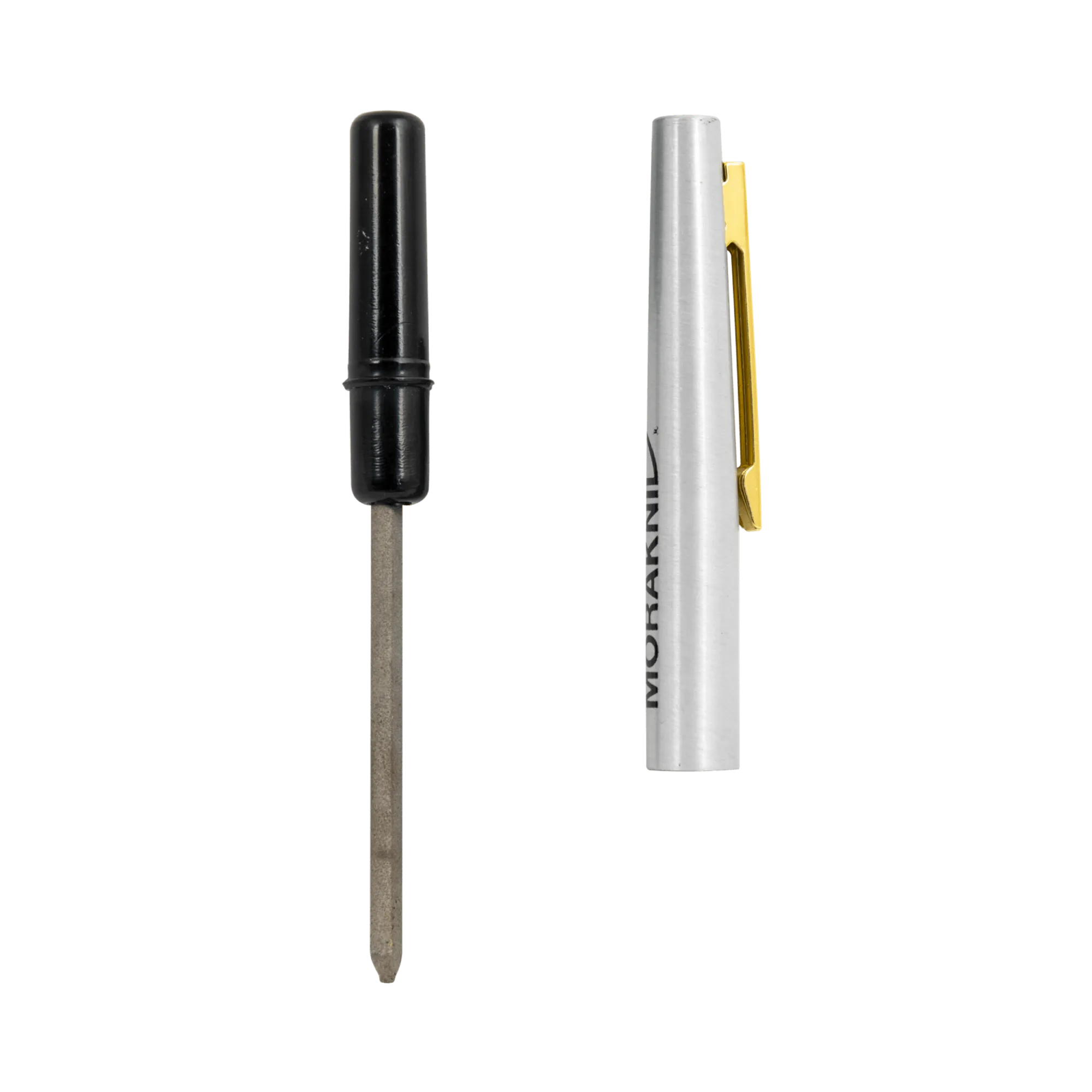 Här är ett diamantbryne som hjälper dig att återskärpa din kniv. Utvecklad för att smidigt bära med sig har den exemplariska egenskaper för att snabbt och enkelt få tillbaka skärpan på eggen. Diamantbrynets 600 kornstorlek passar alla ståltyper.