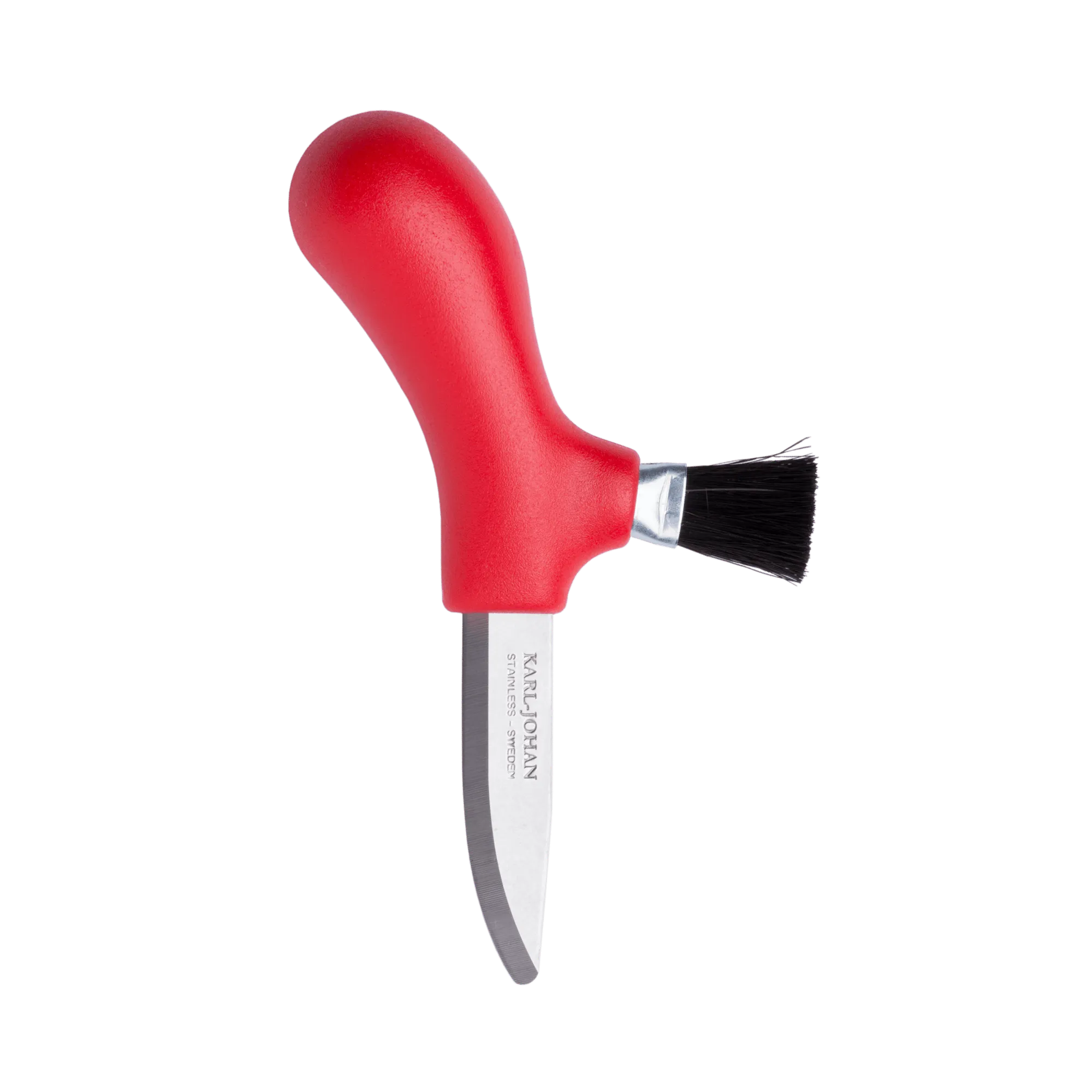 Karl-Johan Mushroom Knife (S) features a tipless stainless steel blade and an ergonomic polymer handle. The genuine horsehair brush and easy-to-clean polymer sheath make mushroom picking, cutting, and cleaning simple and convenient.