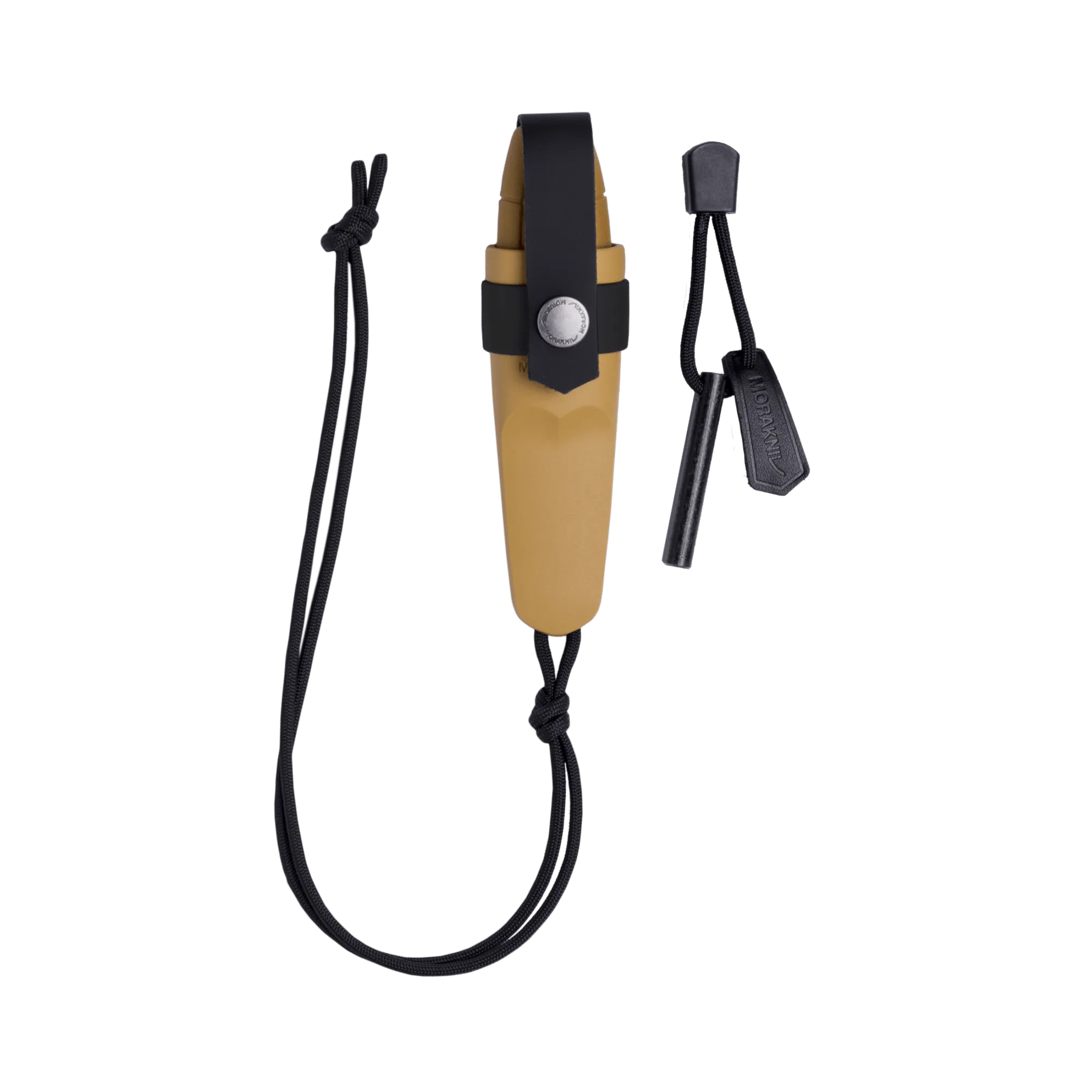 Eldris (S) with fire kit is a small outdoor knife made of Swedish stainless steel, featuring an included ferro rod and a polymer sheath with paracord and secondary lock. It’s easy to carry and just as useful for everyday tasks at home as it is for carving, cutting branches, or starting a fire outdoors.