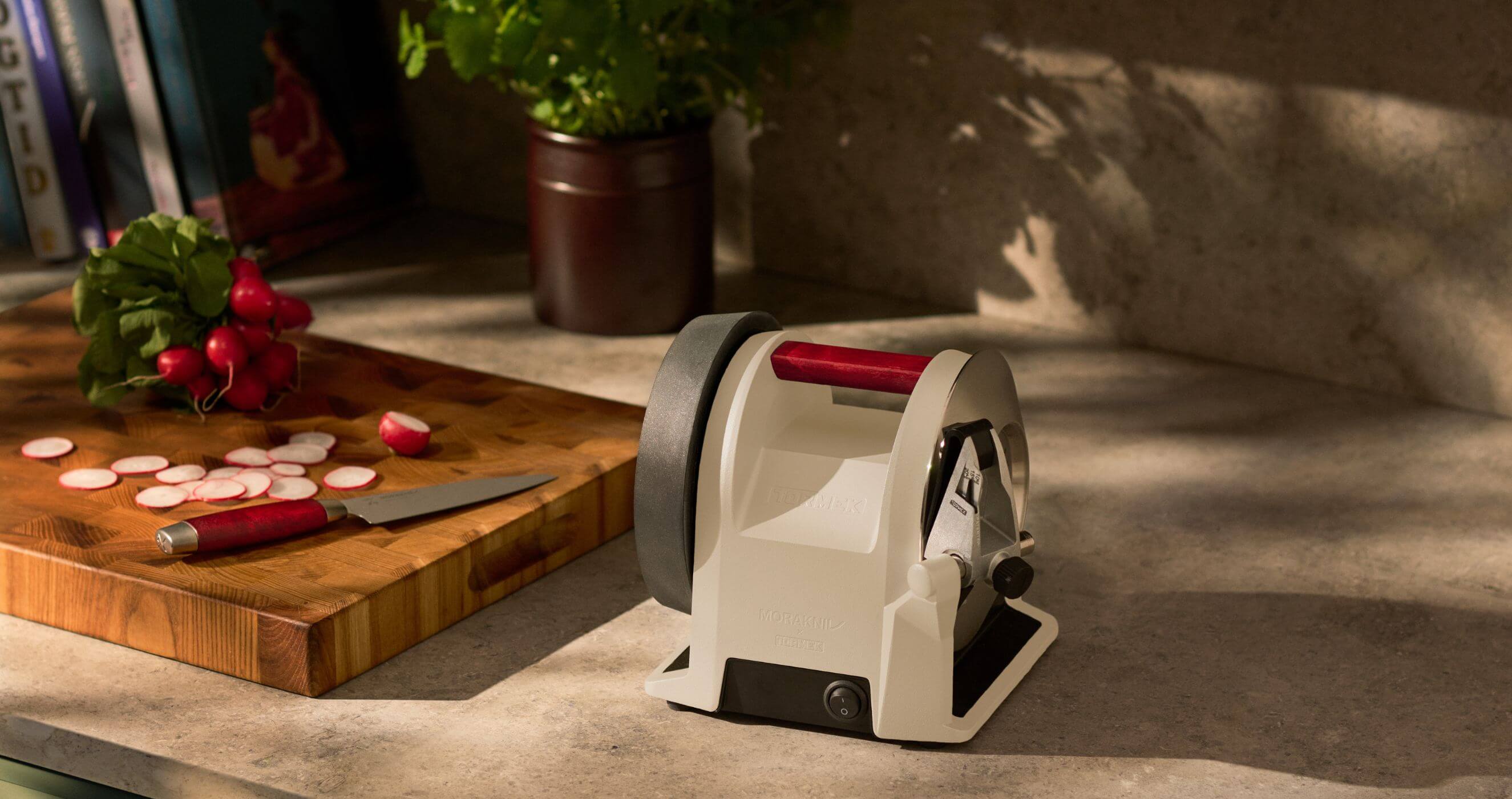Tormek T-1 Morakniv 1891 Linen White has a sleek, subtly industrial design that gives it a given place in the kitchen. Because whether you're cooking in a restaurant or at home in your own kitchen, the chef's most important tool is not a knife, but a real knife sharpener.