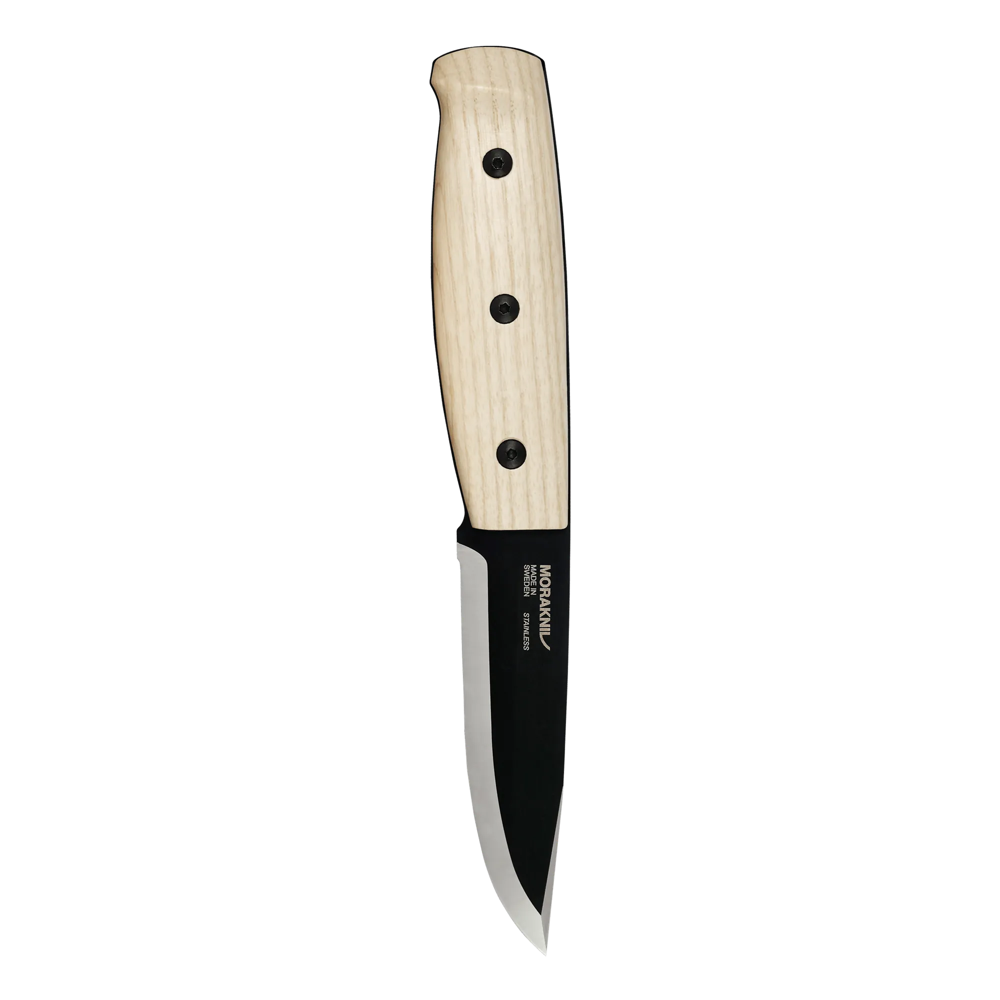 The Ash Wood Outdoor Collection combines timeless design with Swedish craftsmanship. With black PVD coated full tang stainless steel blades, light ash wood handles and vegetable tanned leather sheaths, the series is both functional and elegant. The Finn, Wit, Lok and Rombo knives are named after early knifemakers in Mora and pay tribute to the people who laid the foundation for over 130 years of knife craftsmanship.