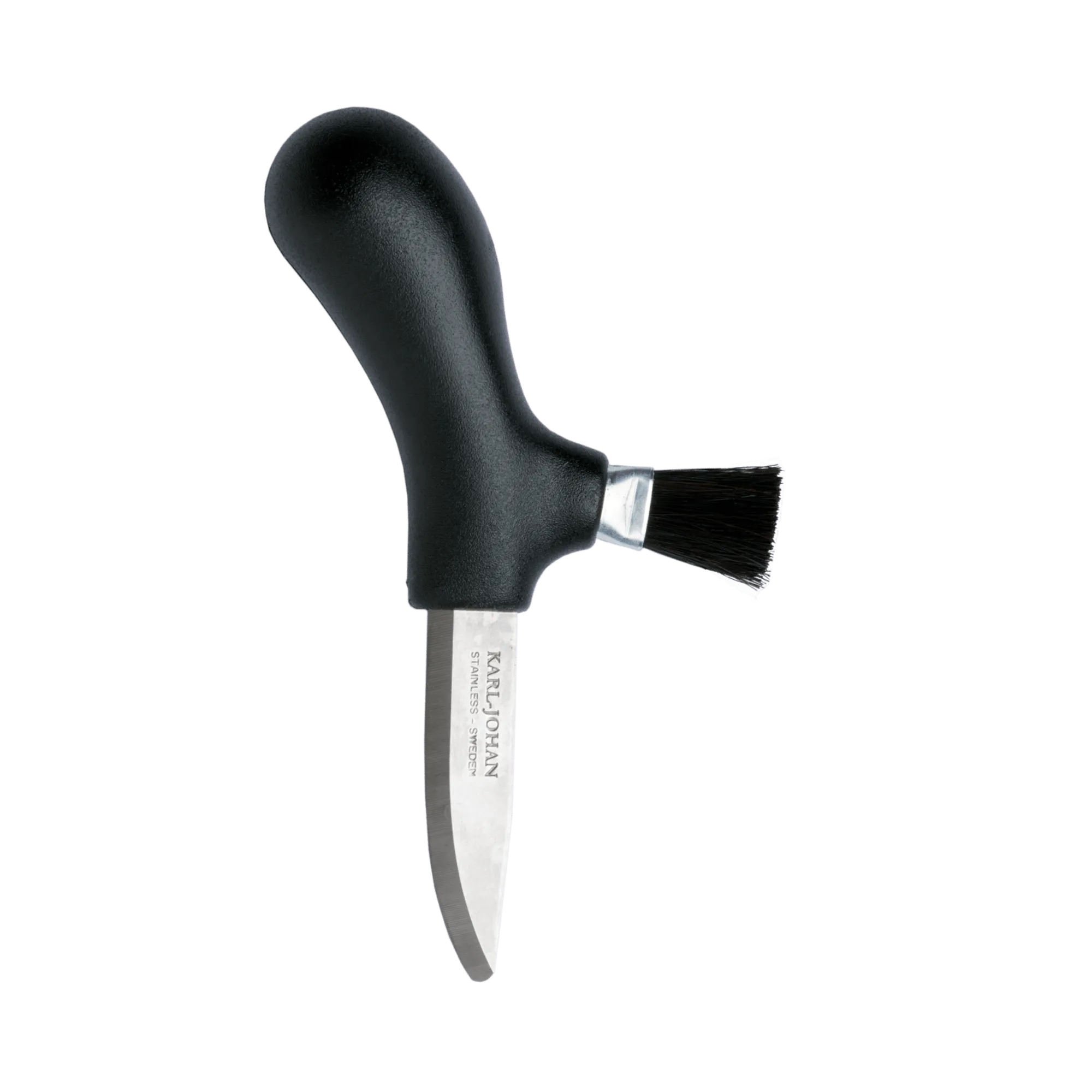 This mushroom knife is handy to keep in your pocket or backpack on your next mushroom-picking trip. The recycled Swedish stainless steel blade has long-lasting sharpness. Picking, cutting and cleaning mushrooms has never been so easy.The ergonomic polymer handle and the 1.4 mm thick, tipless blade made of recycled Swedish stainless steel are specially designed for easy cutting and cleaning of mushrooms. The brush is made of genuine horsehair and the polymer sheath is easy to clean.