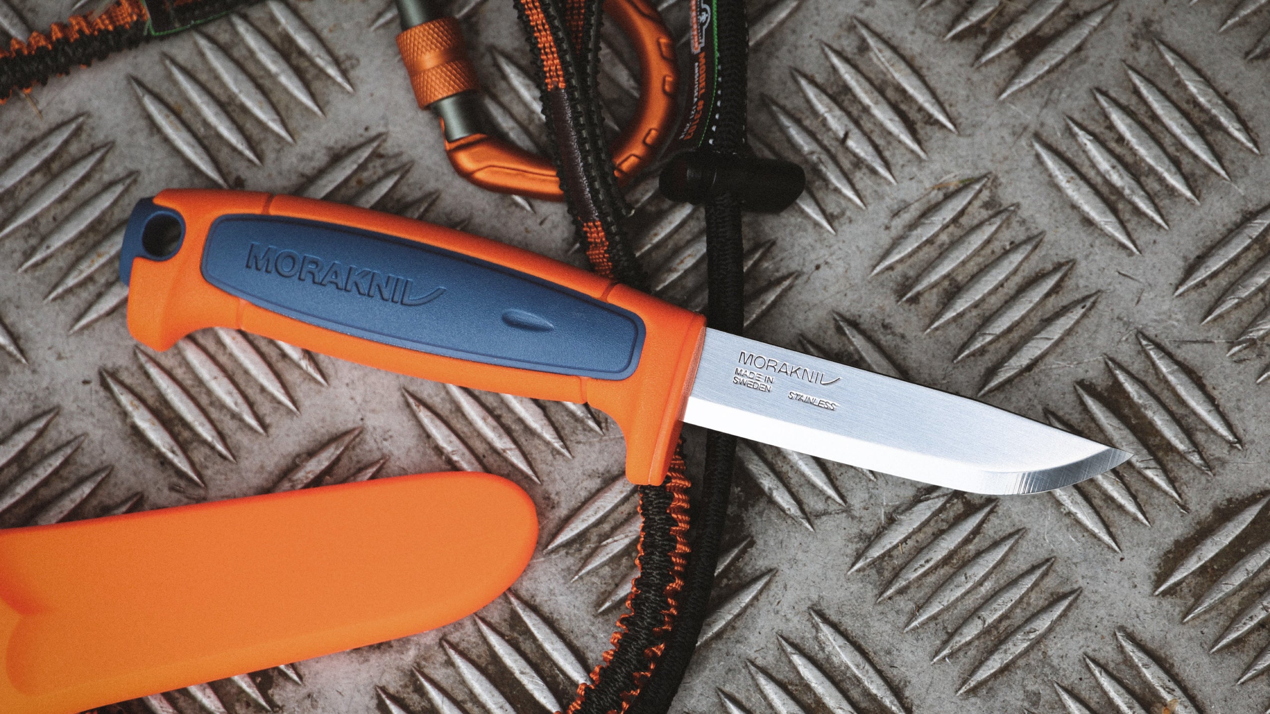 Duty-kniv i rostfritt stål, 2 mm blad, hål för säkerhetslina
